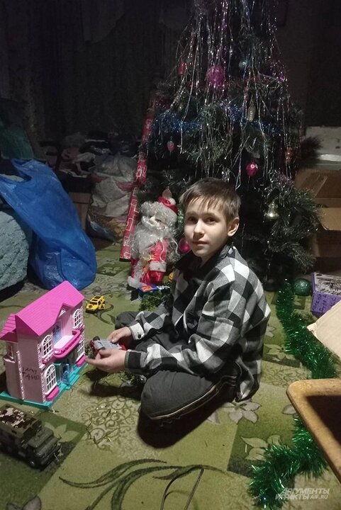 «В крышу попали, стёкла все повылетали, потолок кое-где обрушился, — вспоминает Сережа. — Это точно украинцы сделали, до этого также в соседнем доме был взрыв. Они малого того что стреляли по нам, так ещё и мины раскидывали, эти, как их, „лепестки“. Наша собака Багира подорвалась на одной, теперь у нее нет лапки. Кроме собаки у нас живёт кот Феликс. Он с нами приехал с Сахалина. А ещё у нас печки не было, в нашем доме было уже совсем холодно, и мы перебрались к соседям. Иногда было, что украинцы давали нам сухие пайки, мама их готовила на плите, так и ужинали. Потом наступила зима, мы ёлку поставили и все вместе встречали Новый год. Ели тушенку из разрушенного сельского магазина. Вкусно было».