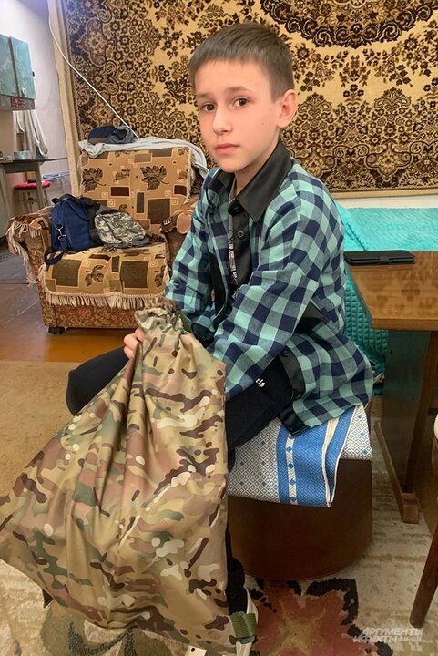 Серёжа Щеглов теперь носит в школу сменную форму в рюкзаке «трофейном» рюкзаке ВСУ. Фото: АиФ/ Никита Сахаров