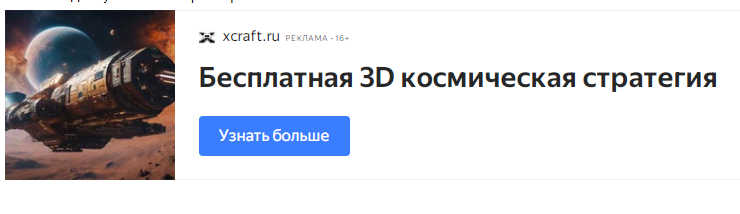 На днях контекстная реклама на АШ начала мне настойчиво рекомендовать "космическую стратегию в реальном времени Xcraft". Мыслю я, что это случилось после моего коммента со словом "стратегический".