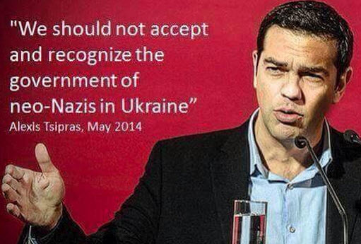 Новый премьер-министр Алексис Ципрас: "Мы полагаем, правительство Украины пришло к власти в результате переворота, и называем его хунтой. Мы не признаем правительство неонацистов на Украине... В ЕС должны уважать мнение людей, которые решили создать федерацию, и это относится и к вопросу Украины... ЕС должно измениться, чтобы выжить - здесь не хватает демократии, и люди не верят, что их мнение может изменить политику ЕС".