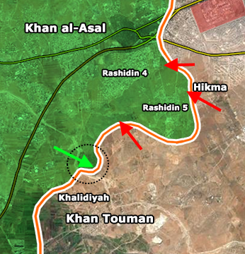 В дополнение к действиям в Al-Hawsh на окраине Хан Тумен, сирийские вооруженные силы продолжают свои военные операции внутри 4 и 5 районов Al-Rashiddeen; эти районы были окружены 4 механизированной дивизией Сирийской Арабской армии и их союзниками.