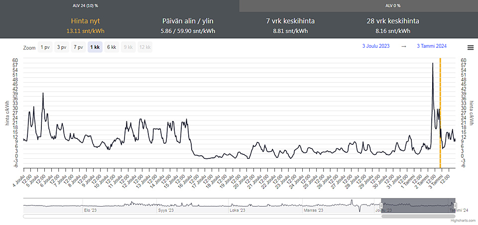По сообщениям финской прессы во вторник, 2 января, цена на электроэнергию поднимется выше обычных отметок.