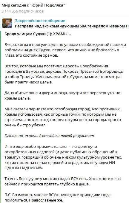 Подоляка отличился вбросом нарратива о том как укры человечно с пленными и даже церкви не тронули...