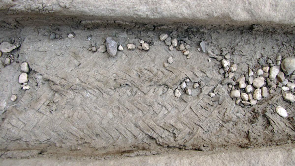 На второй картинке вполне может лежать полу окаменелая циновка (особенно если её поливали пыль и дожди, хотя вроде уже ответили). Или это новодел как на первой картинке немного под другой технологии.