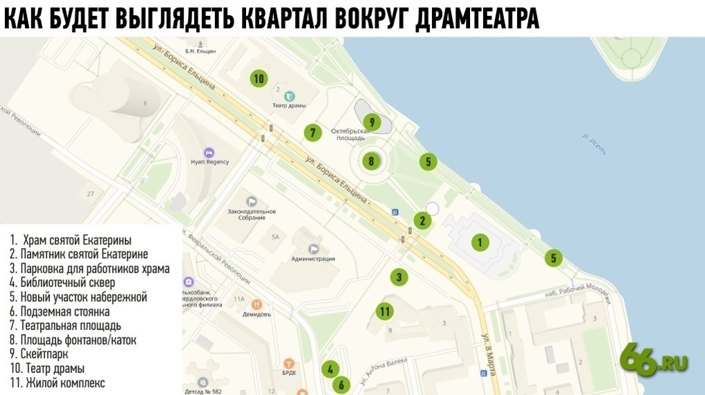 Вы бы пошире сделайте карту. Там рядом Ельцин-центр, отель Хаят 5*, супердорогой небоскреб-Исеть. И везде приложился Козицин. Вот интервью с ним на эту тему-https://www.e1.ru/news/spool/news_id-65714481.html