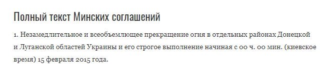 На протяжении многих лет с начала конфликта на Донбассе, каждый западный политик заканчивал своё любое выступление одной и той же мантрой - "Россия должна выполнить Минские соглашения" ( то, что РФ не является стороной конфликта идиотам  пофиг). Ну вот, кажется таки допросились. Первый пункт пошёл. Интересно, как будет реализован второй - сами укры отползут или просто наша техника расчистит оговорённую полосу от того, чего там по договорённостям там быть не должно?
