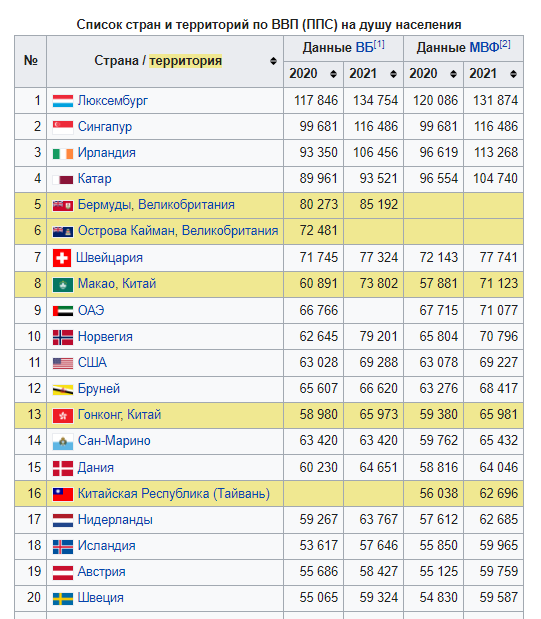 И это никак не коррелирует со списком стран с самым высоким доходом: