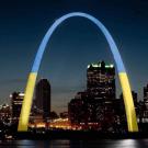 USA TODAY. Сообщение в Facebook от 1 марта, демонстрирующее Арку Сент-Луиса, подсвеченную синим и желтым светом, было скопировано более 20 тыс. раз менее чем за две недели. Фотография также была многократно продублирована в Twitter.