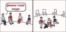 Зал погружён во тьму. На экране - хаотичный видеоряд, смонтированный под шизофренический аккомпанемент (смесь гимна СССР, «God Save the King (Queen)» в стиле тяжёлого рока и чавканья от пускания пузырей через соломинку в стакане).