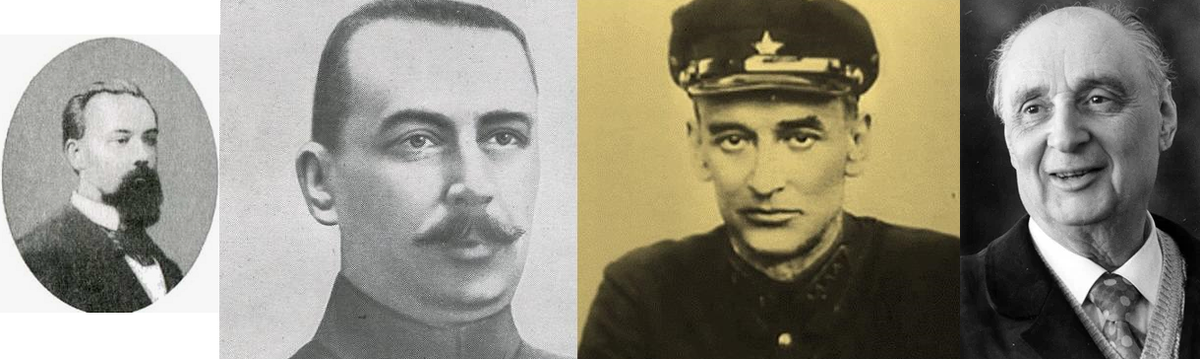 Рисунок №1. Слева направо: отец Иван Дмитриевич Бокий (1845-1897), сын Борис Иванович Бокий (1873-1927), сын Глеб Иванович Бокий (1879-1937), внук Георгий Борисович Бокий (1909-2001) - советский и российский учёный-геолог, физикохимик, создатель и организатор отечественной школы кристаллохимии, создатель новых принципов классификации минералов, член-корреспондент АН СССР / РАН.