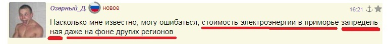 Стоимость электроэнергии в Приморье действительно ЗАПРЕДЕЛЬНА (по дешевизне). Даже на фоне тарифов на электроэнергию в других регионах РФ, являющихся одними из наиболее доступных на планете Земля и самыми доступными за всю историю России.
