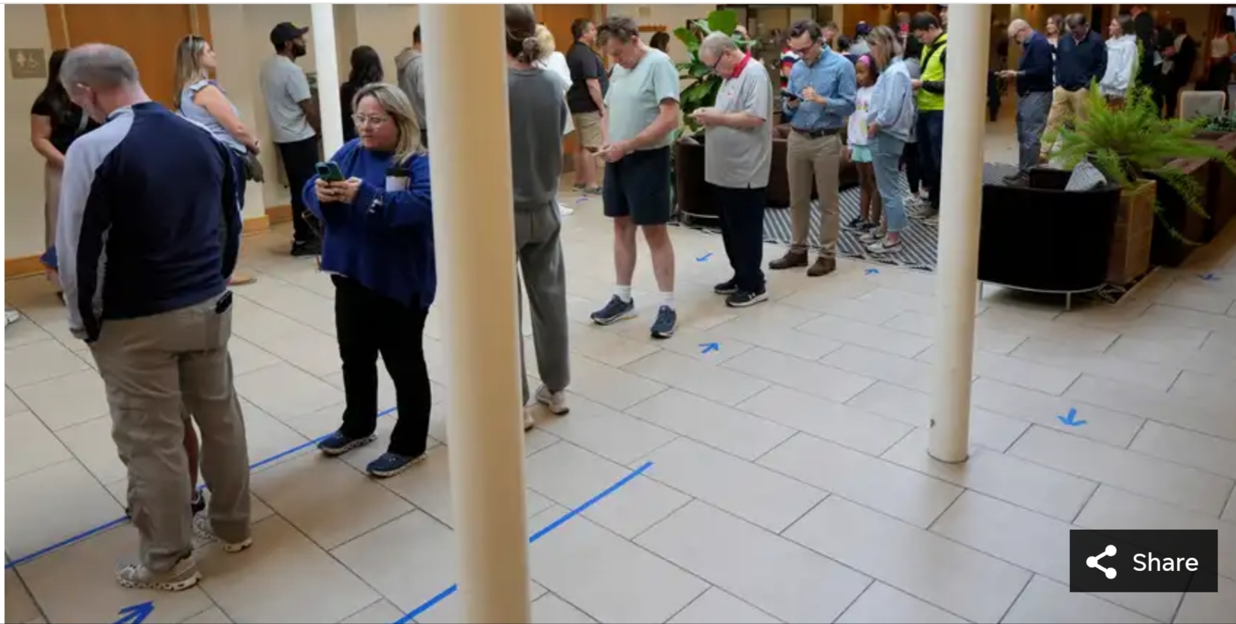 Ладно, помогу. Вот из этой галереи с подписью "A long line of voters waits inside Congregation Agudas Achim in Bexley on Election Day, Nov. 5, 2024. The approximate wait time was 45 minutes".