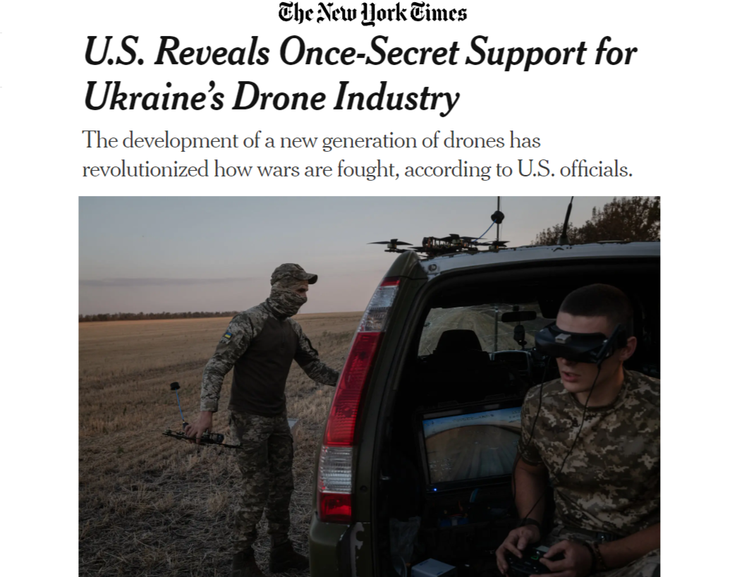 Инновации в украинской индустрии беспилотных летательных аппаратов были названы революционными, но поддержка со стороны США была менее заметной. Помимо технической поддержки, США потратили значительные средства, в том числе 1,5 миллиарда долларов, отправленных в сентябре прошлого года, на развитие производства беспилотных летательных аппаратов в Украине, сообщили официальные лица.