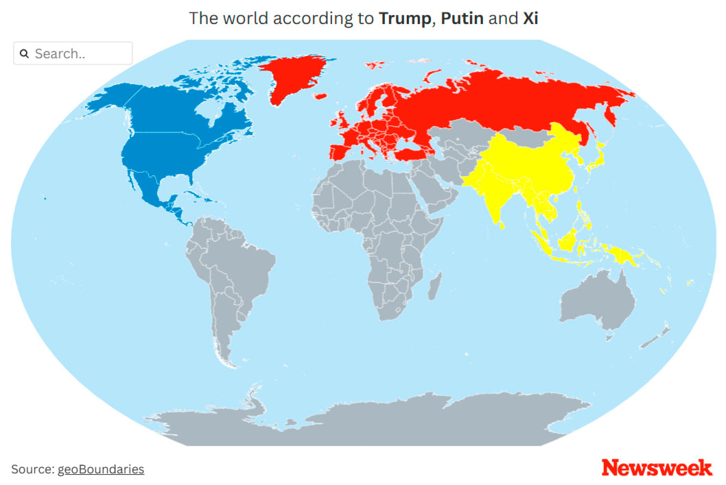 Newsweek: Карта показывает как Трамп, Путин и Си могут поделить мир