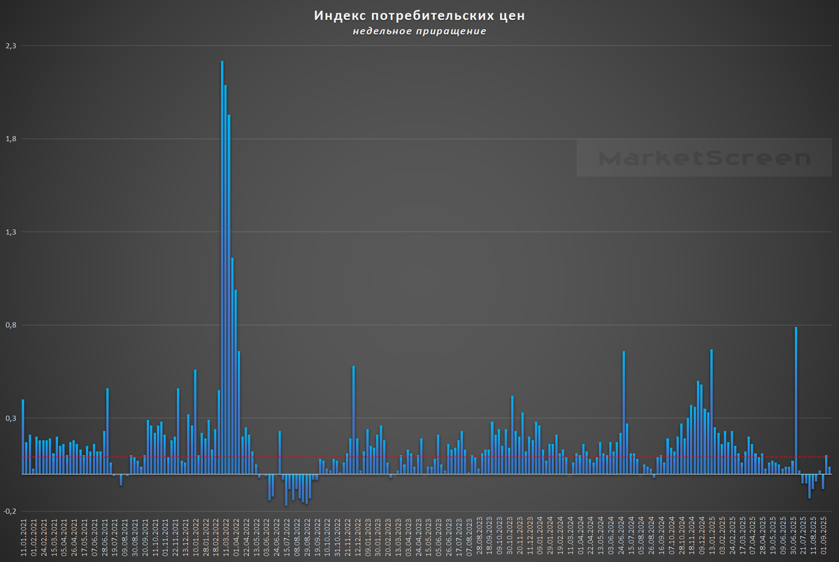 Почему новости хорошие? Потому что 0,04% в неделю – это целевых 0,08% в неделю.