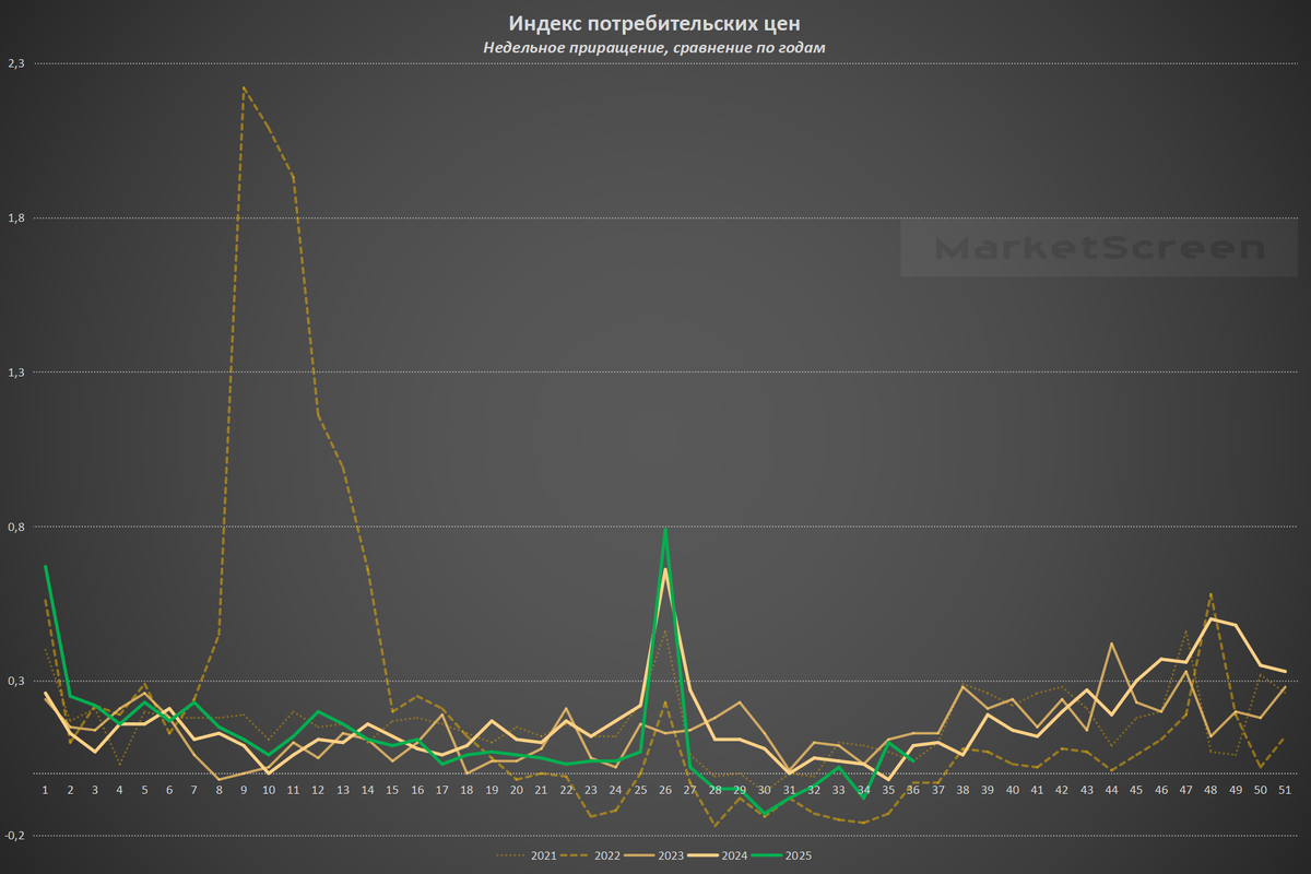 РОСТ ЦЕН В РФ С 9 ПО 15 СЕНТЯБРЯ ЗАМЕДЛИЛСЯ ДО 0,04% С 0,10% НЕДЕЛЕЙ РАНЕЕ