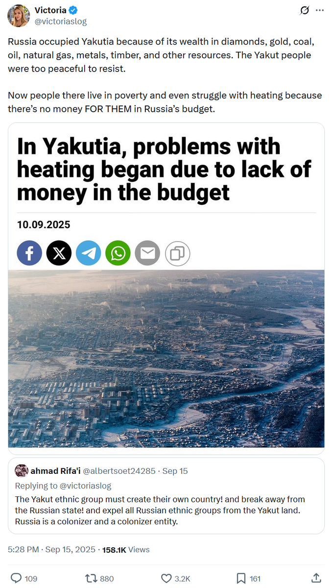 Про Якутию - Типичная западная пропаганда, накидать слов, добавить пару картинок не имеющих к ним особого отношения и распространять пошире и поэмоциональнее.