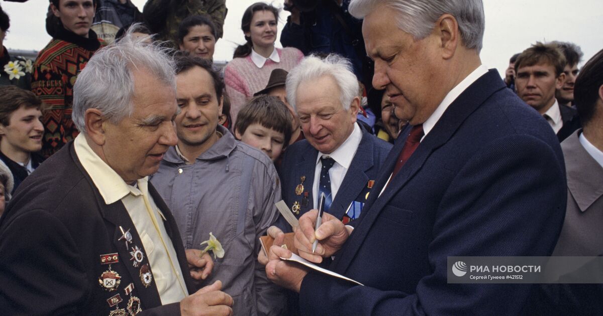 9 Мая 1994. Ветеран Советской Армии полковник Виктор Никитенков среди сторонников Ельцина