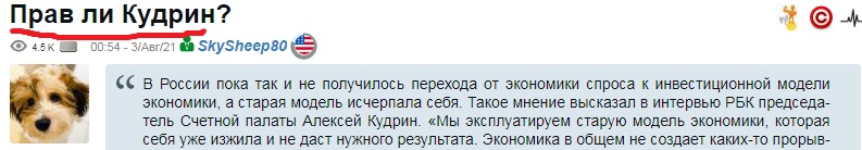 Вчера легенду АШ Овцу задело то, что болтовня Кудрина будто появление у РФ своего условного Айфона, якобы, могло бы вывести РФ на 5%-ые темпы роста ВВП, была поставлена под сомнение. В статье с фактами в руках я показал, что те немногие страны, которые уже имели опыт роста со столь высокой базы как у РФ сейчас, никакого устойчивого роста по 5% не показывали и близко. Просто потому, что на таком высоком уровне быстро не растут Но Овца сегодня молодец, применил простой, но исправно работающий метод. Во-первых, подменил сам предмет спора, показав данные якобы подтверждающие слова Кудрина, хотя, будь читатели повнимательнее, увидели бы, что данные эти слова Кудрина скорее...опровергают . И, во-вторых, применил даже не им придуманную манипуляцию с подбором никак объективно не аргументированной, но наиболее удобной для него точки отсчёта. В-третьих, навалил прямого оффтопа. Разберём.