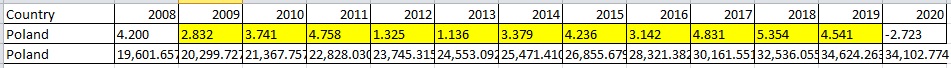 За то же самое время в Польше ВВП вырос на 46.9%