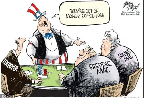 Считаю, что полугосударственные структуры типа Fannie May очень опасны, поскольку кредитование из воздуха на 30 лет под низкие проценты неизбежно ведет к росту цен на жилье, и уменьшает доступность жилья из-за роста цен. Когда-то разговаривал с одним историком, он занимается экономической историей США, он говорил что еще в 30-е годы в США самый длинный мортгейдж для простых людей был на 5 лет, и под высокие проценты. Плюс на всю стоимость дома кредита не давали, поэтому люди брали кредит на фундамент и каркас дома, ставили каркас, и обшивали 1-2 комнаты временно досками, и там жили, и постепенно за пару лет выгоняли весь дом. Конечно, богатые могли взять кредит на любую сумму, но бедные строили частями, и только на маленьких кредитах.