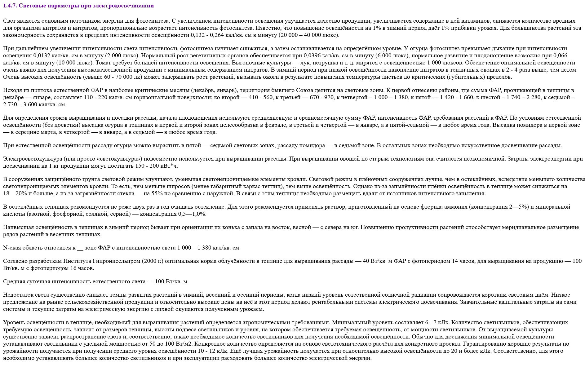Правительство РФ более не доверяет отраслевой науке в части нормирования освещения тепличных комплексов. В постановлении N1445 от 30 августа “О внесении изменений в приложение N8 к Государственной программе развития сельского хозяйства и регулирования рынков сельскохозяйственной продукции, сырья и продовольствия” на стр. 2 вводятся новые нормы облученности для типовых сельхозкультур. Поскольку, само постановление в основном про инвестиционные деньги, кто не будет соблюдать, рискует их не получить. См. http://government.ru/news/43169/