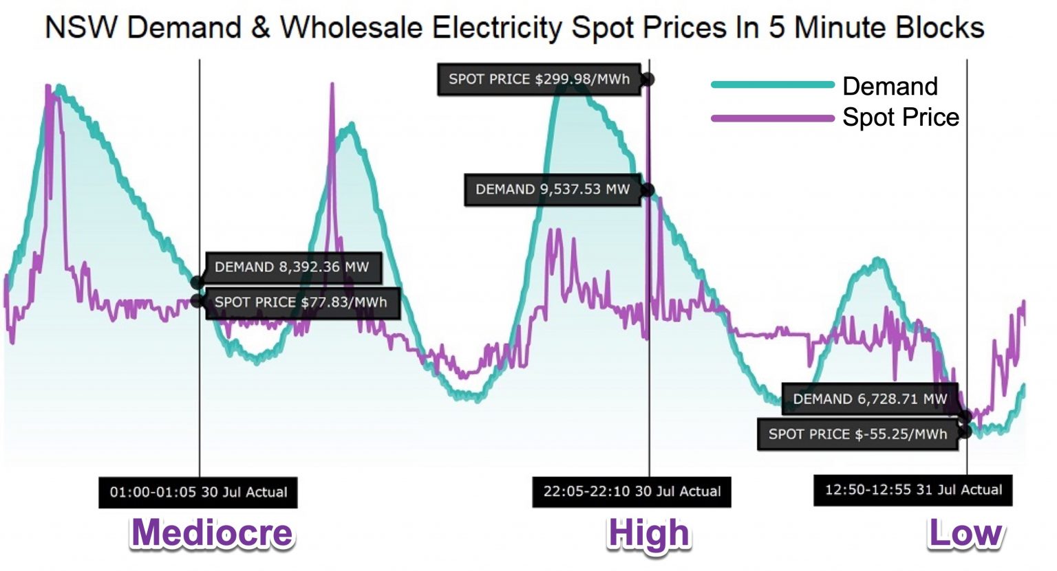 из графика видно, что изменение спотовой цены гораздо более динамично чем требования сети.