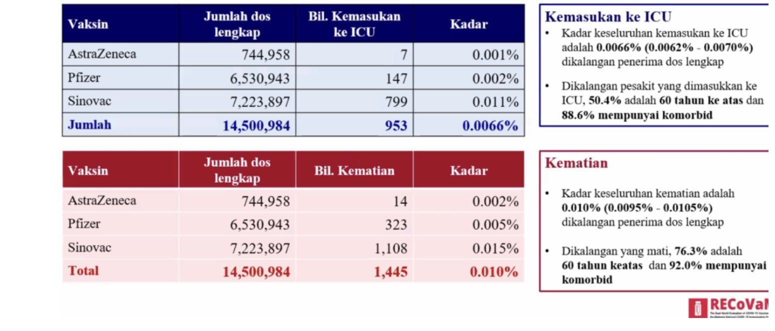 В исследовании AstraZeneca выявила меньшее количество случаев и смертей в отделениях интенсивной терапии. Это связано с тем, что количество получателей полной дозы вакцины невелико по сравнению с компаниями Pfizer и Sinovac, а большинство получателей вакцины - молодые люди. В то время как вакцины Pfizer и Sinovac вводятся всем возрастным группам, включая группы высокого риска.