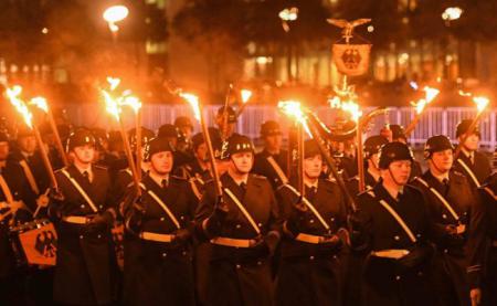 Церемония вечернего отбоя бундесвера в центре Берлина у Рейхстага шокировала немцев. Факельное шествие, устроенное бундесверовцами, плюс штандарты а ля Третий рейх напомнили берлинцам о временах нацистов.