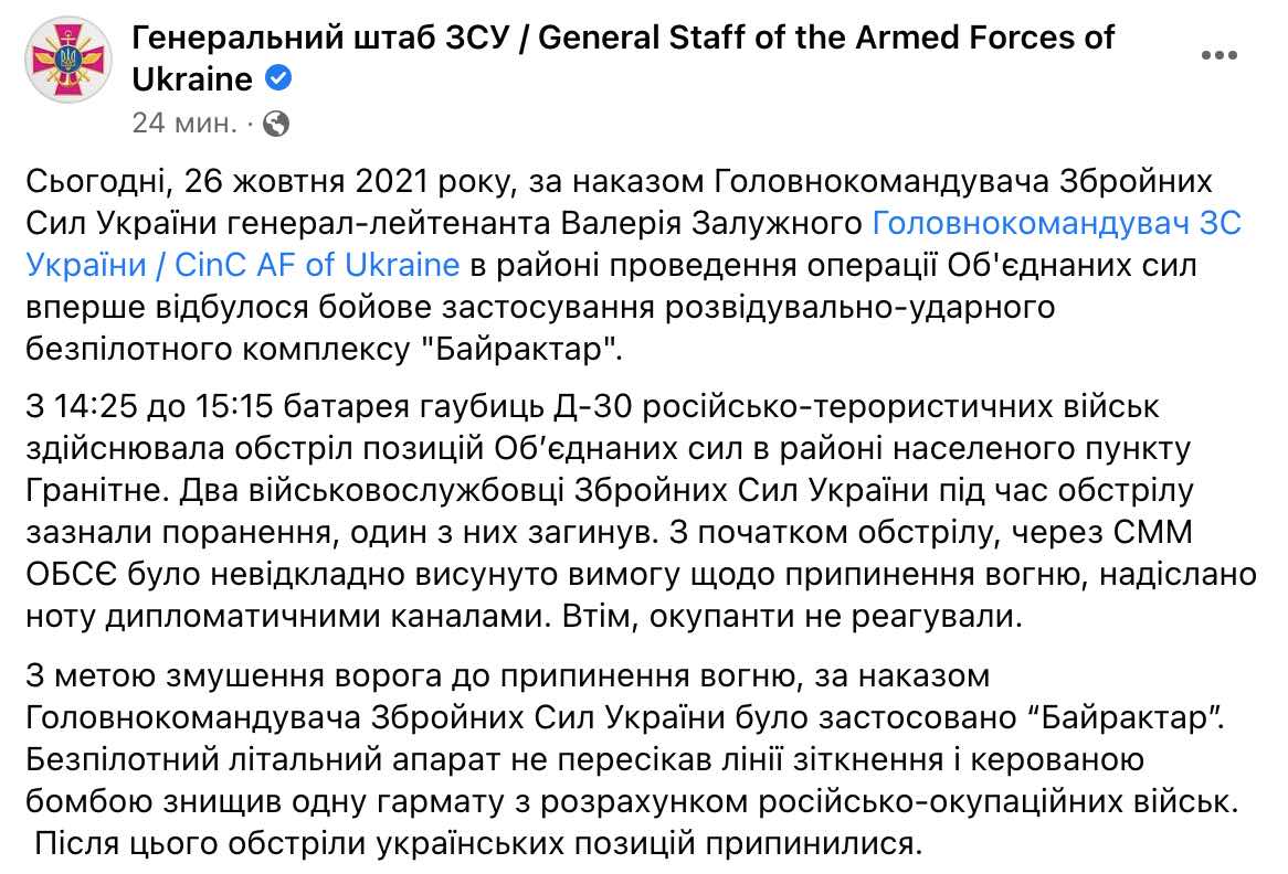 Вчера на Украине случился внезапный праздник, Украина впервые применила на Донбассе ударный беспилотник Bayraktar и уничтожила пушку. Об этом сначала в Facebook написали "активисты", а чуть позже официально подтвердило МО Украины. Читаем что пишут - "... сегодня с максимально возможной дальности (15+ км) обстреляли село Гранитное Донецкой области. Обычными средствами обнаружить батарею украинские военные не смогли слишком далеко ...".