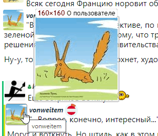 по наведению мыши на аватар (в комментах, в сайдбаре) - увеличенный аватар;