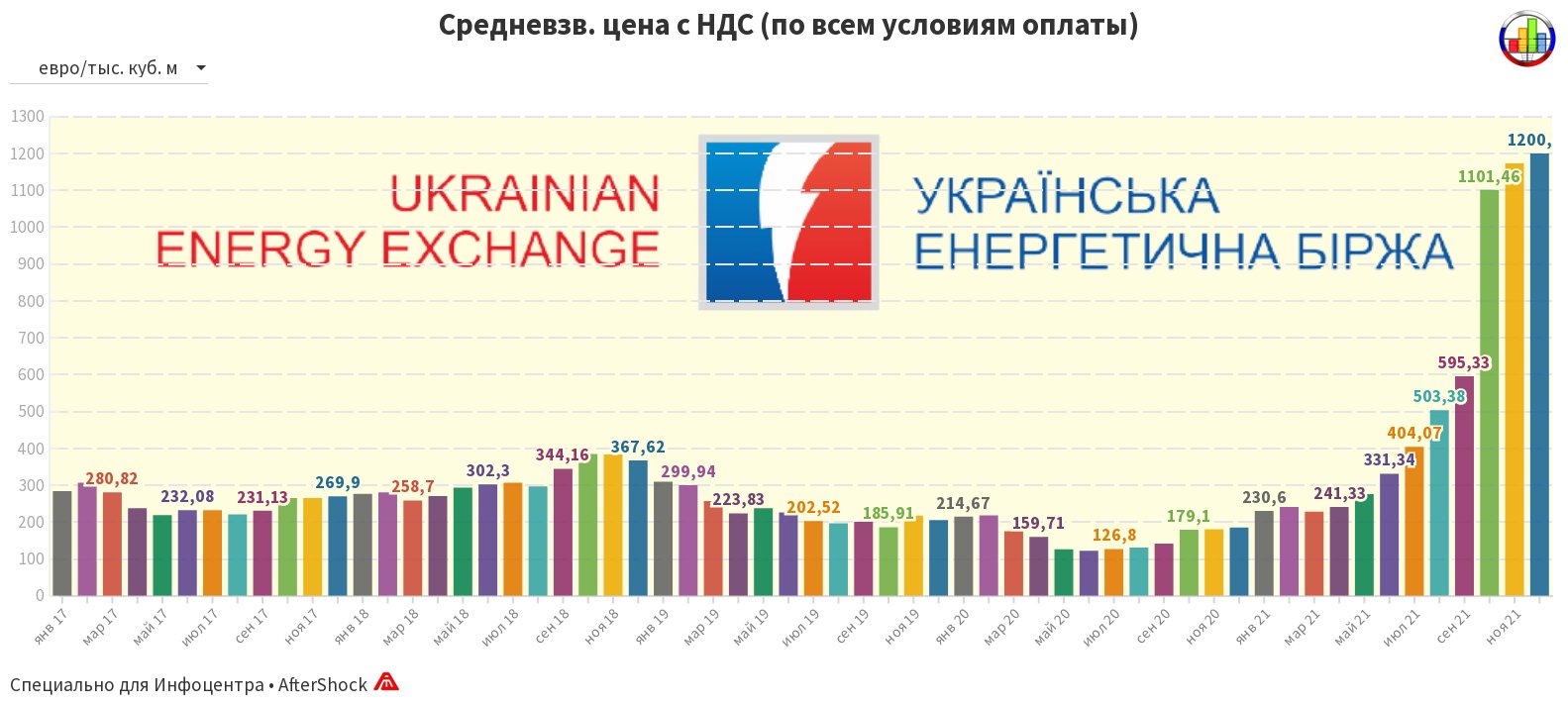 Прежде всего очередная коррекция на график с украинской энергобиржи. Была тема под названием "Покращення (укр. Улучшение)", так вот с названием для нее я излишне оптимистично поторопился. Но зато предусмотрительно сделал там оговорку, что цена еще будет меняться, синхронно реагируя на изменение цен с европейского спота. И вот теперь, когда ноябрь практически закончился и его показатель можно считать конечным, посмотрим как изменились цены для уже почти наступившего декабря... А они поставили новый исторический рекорд и единственный вопрос, который у меня возникает: а по таким ценам действительно кто-то покупает и продает газ? На переднем плане график в гривнах, по клику в евро. Берем во внимание, что это еще без местной доставки до конечного потребителя, то есть в сумму включена доставка только из ЕС до Украины.