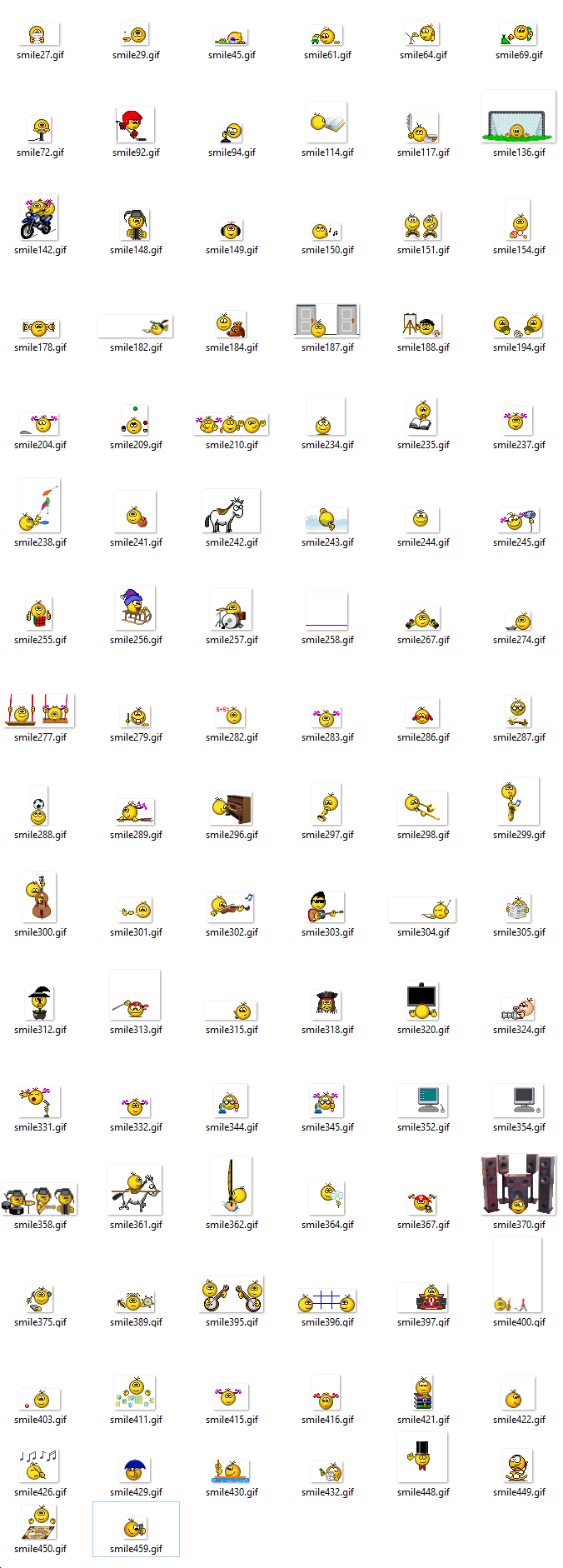 Список грустных и злых с номерами в smileXXX.gif (можно собрать URL, как написано в статье):