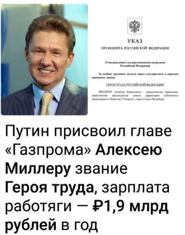 Молодец Миллер. Отличный топовый управленец. Объем прироста доходов госбюджета от Газпрома за годы его управления в ТЫСЯЧИ РАЗ больше чем прирост зарплаты правления. Хотя зарплату я бы топ-менеджменту все равно бы урезал.