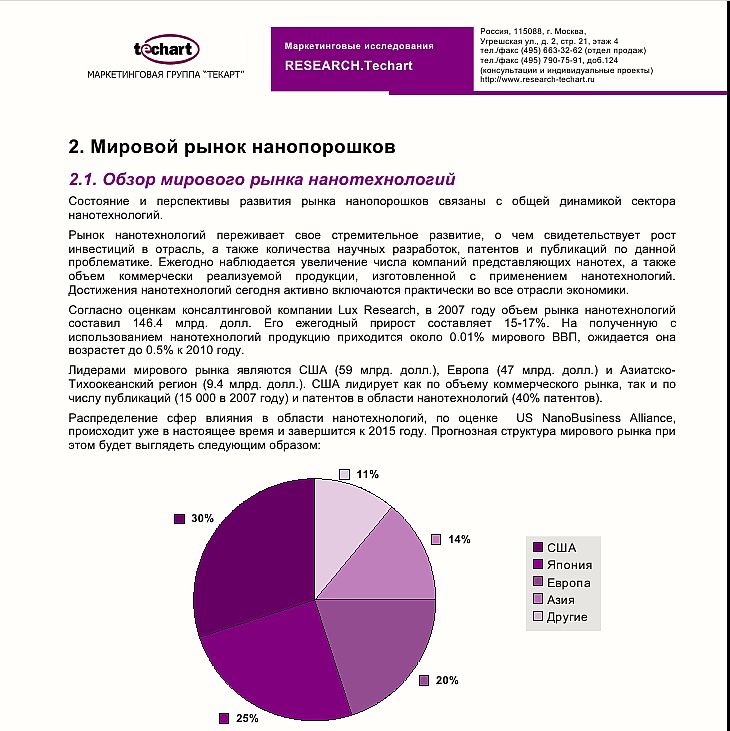 «Маркетинговое исследование рынка нано порошков»