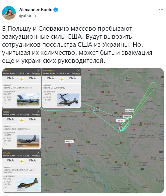 Вывезенных из Киева во Львов американских дипломатов эвакуируют в Польшу — об этом сообщает Bloomberg.