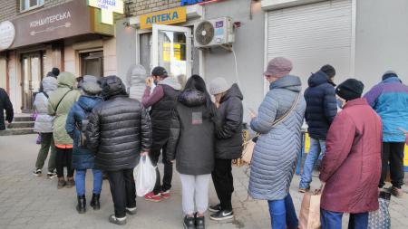 очередь в аптеку. Во все аптеки большие очереди.