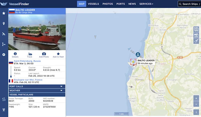 "Балтийский лидер" направлялся в Санкт-Петербург, но был перенаправлен в порт Булонь-сюр-Мер на севере Франции между 3 и 4 часами утра (0200-0300 по Гринвичу), сообщила агентству Reuters капитан Вероник Маньен из Французской морской префектуры.