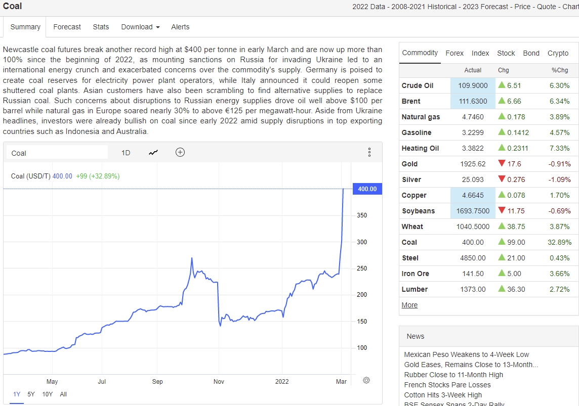 На углеводородном рынке продолжается праздник жизни. Цены на нефть, вероятно скоро превзойдут все мыслимые и немыслимые рекорды. Европа недальновидно ввязавшаяся в конфликт с основным поставщиком ресурсов скоро окажется в положении своих сателлитов из числа укронацистов, когда солярки мало и она стоит чрезвычайно дорого. В южных регионах посевная уже идет. С трудом себе представляю ощущения фермеров от цен на соляру и удобрения. Обычно там полевые работы осуществляются в кредит. Смогут ли осенью продать еду по новым ценам и отбить кредиты? Вопрос. А если и смогут, то значит граждане ЕС откажутся от других товаров и услуг в пользу еды и кооммуналки. Одним из первых под нож пойдет туризм, а туризм это авиастроение и авиакомпании.