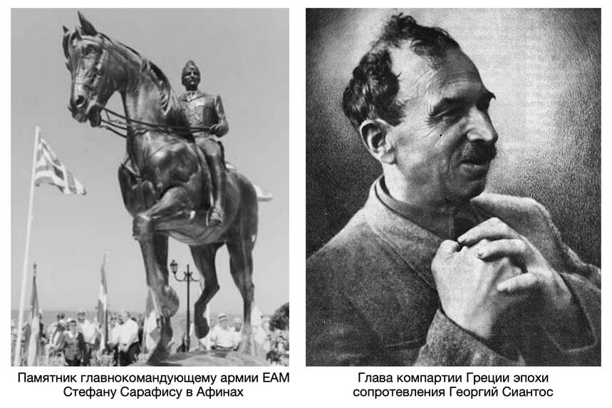И тут в 1945-м «чудесным» образом появился попутчик англичан во главе компартии Греции. Не коллаборант, не предатель, а новый (он же старый) лидер компартии страны Никос Захариадис. Он оказался именно попутчиком, с точки зрения внутренних убеждений. Никос Захариадис был довоенным (до 1941) лидером компартии Греции. Весь период немецкой оккупации провел в концлагере Дахау и не участвовал в организации партизанского движения. Соответственно не подписывал и Варкизонские договоренности.