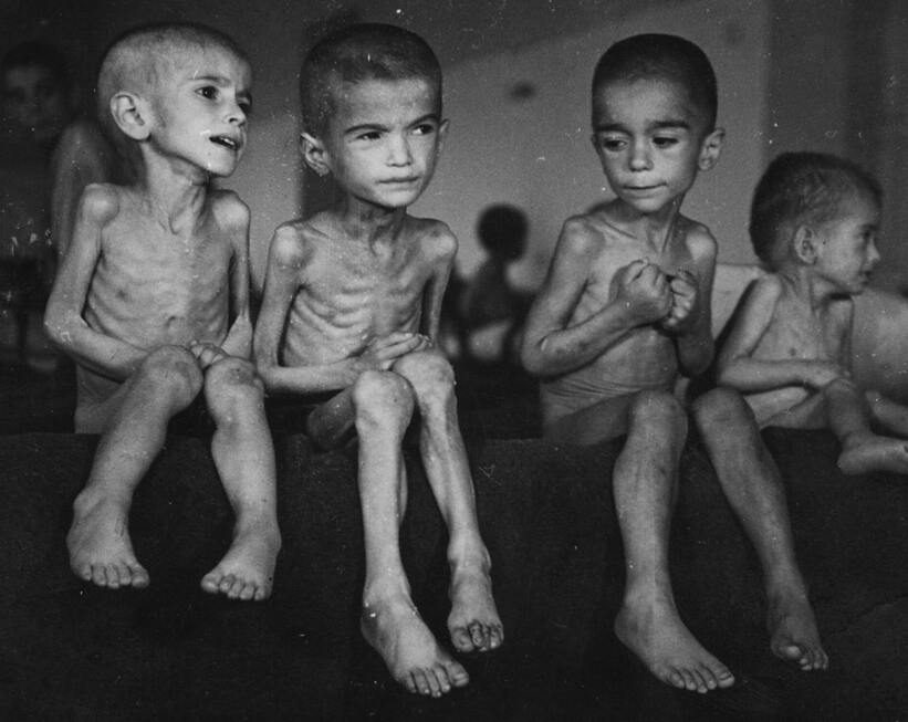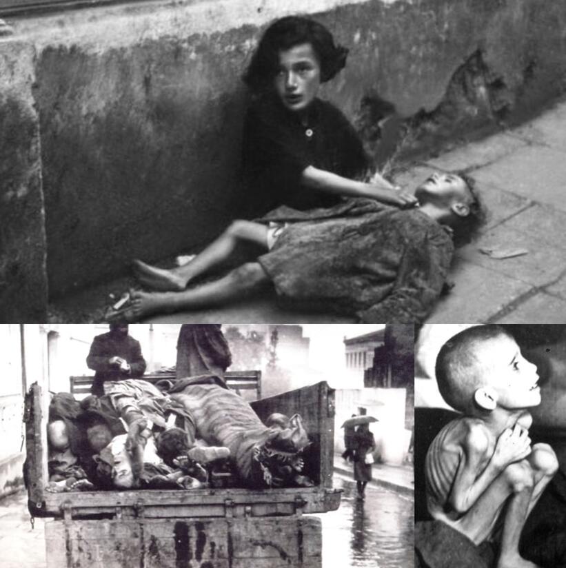 Фотографии выше и ниже не из немецкого концлагеря они из Афин которые и были превращены английской блокадой в один большой концлагерь. Дети умирали прямо на улицах