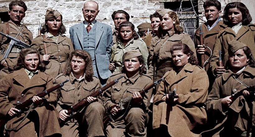 Фотография выше была сделана в 1947м году во время посещения партизанских регионов представителями комисси ООН. Голубенький (в смысле костюма) бельгийский коммисар. Они пытались понять как армия где подростки и женщины воюют на ряду с мужчинами может успешно сопротивляться королевской армии за которой стоит сама Англия. Но это было в 1947м когда во главе Демократической армии был талантливый Маркос Вафиадис (который английский шпион если что) и была еще надежда на мирное урегулирование. Комиссия обвинила балканских соседей Греции в разжигании гражданской войны (получается англичане просто мимо проходили). В 1949м после закрытия Югославской границы и безумия Захариадиса в качестве командующего армией эти люди в абсолютном большинстве будут уничтожены. Для американцев это был еще и полигон, где они апробировали новые военные технологии, которые потом будут использованы во Вьетнаме. Солдат (а это в том числе и дети и женщины) просто сжигали заживо бомбами с напалмом. Остатки обугленной армии отступили за Албанскую границу (Захариадис выжил).И что тут праздновать? Но на этом не закончили