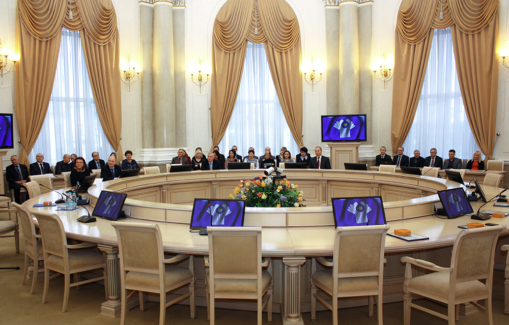 Круглый стол в круглом зале круглой башни здания Совета СНГ. Лепнина, колонны, позолота. В мягких кожаных креслах расселись представители всех стран-участников. Эксперты-юристы, дипломаты, полицейские.
