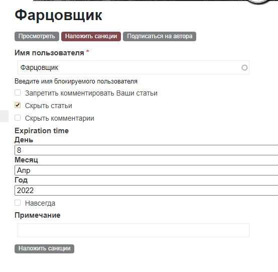 Не стоит ли эту функцию вывести из раздела "Санкции"? Если я скрываю статьи какого-либо автора, это не означает автоматически, что я о нем плохо думаю, а только то, что мне неинтересна его тематика. Тем более, что это отражается у человека в разделе "Пользователь забанен другими", что совсем обидно для него.