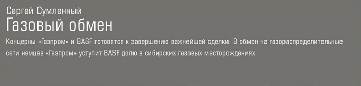 ПХГ, сети в Германии в обмен на долю Ачинского месторождения.