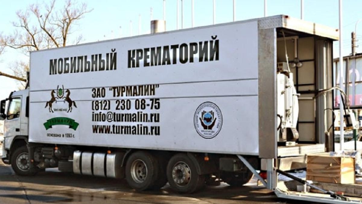 Мобильный крематорий предназначен для обеззараживания биологически опасных (заразных) останков. Это дорого и не подходит для массового применения.
