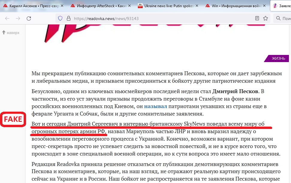 Не в том плохие новости, что мало кто посмотрел реальное видео интервью Пескова Sky News'а. Который, в сущности, ничего нового не сказал - несмотря на агрессивного ведущего. Да и вообще - "Владелец видео запретил его просмотр в вашей стране". Просто совпало.