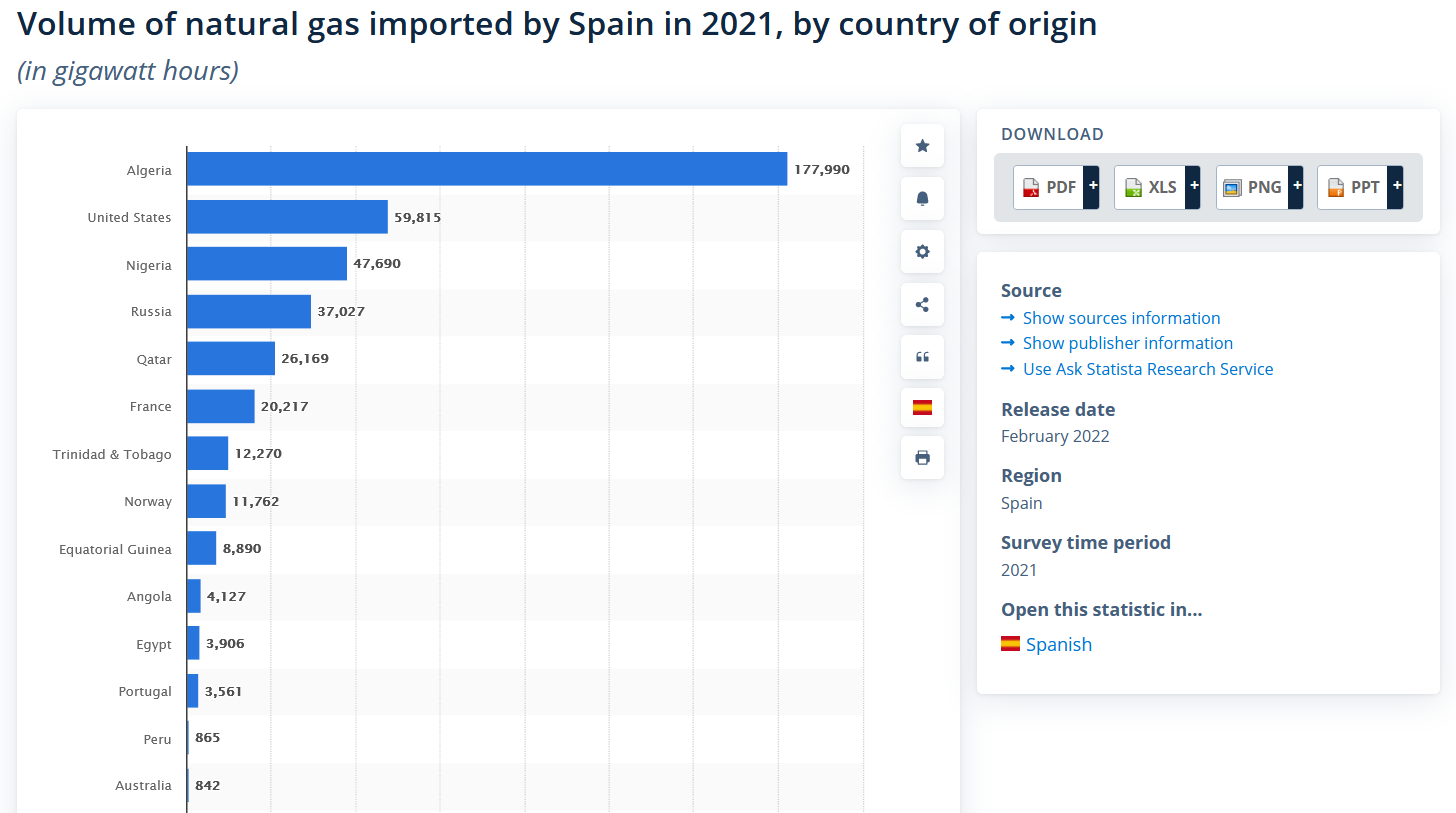 Так же Алжир гнал газ через Мароко в Испанию и это всего лишь 50% объема. Надо же кому то впихнуть. А как там Испания?