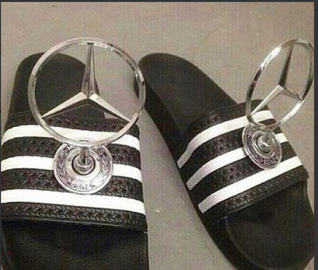 У меня такие, две пары, уже лет 10 назад купил на амазоне. Без мерсовской звезды, само собой, и полоски я черным маркером закрасил. В целом отличные тапки )