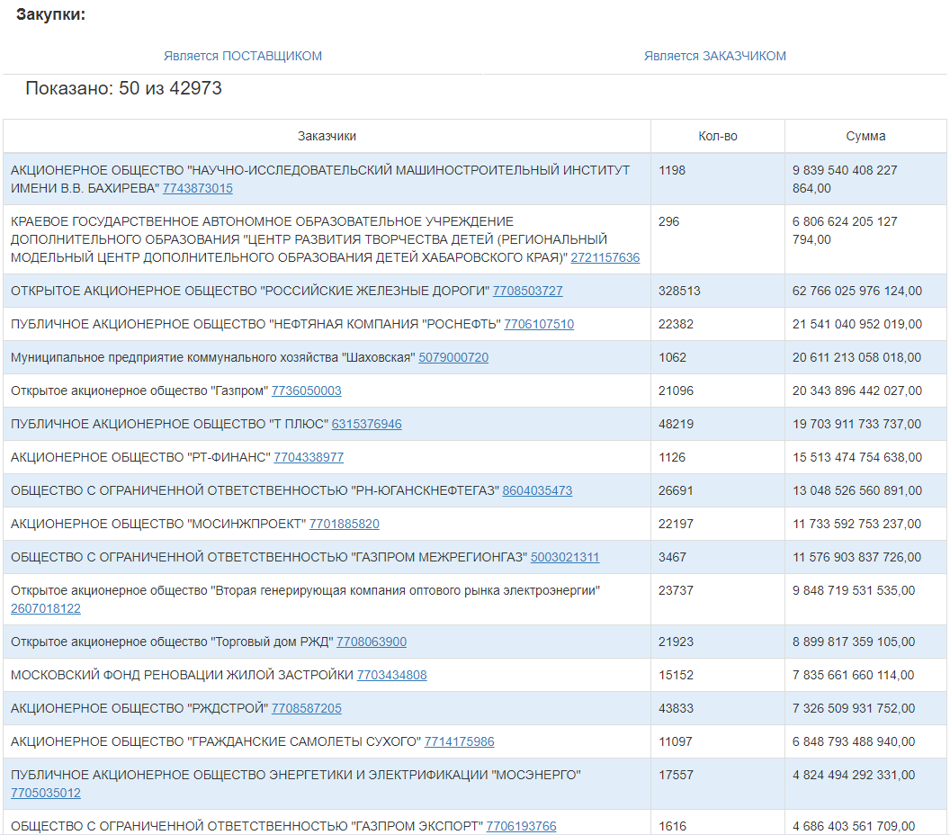Несколько примеров на скриншотах - компашка с выручкой 800 млрд или лесопилка в кабарде с выручкой в 700 млрд